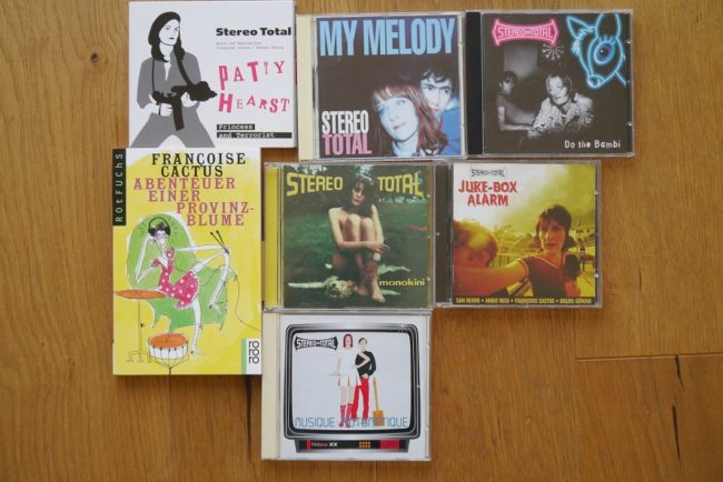 Im Jahr 2000 begann mein Berufsleben. Stereo Total begleitete mich weiter. Zum ersten und letzten Mal besuchte ich ein Konzert der Band. Treu kaufte ich weiter die CDs. Ein Freund schenkte mir mein erstes Françoise-Cactus-Buch. Inzwischen war ich auf der Suche nach einer Sprache für Erinnerungstexte. Vor allem die Ironie und der freie Umgang mit Erinnerung in Françoise Cactus Büchern waren inspirierend. Bis zum Album »My Melody« steigerten sich Stereo Total beständig. Das Album »Musique Automatique« riss mich nochmal so richtig vom Hocker. Aber ab dann stagnierten Stereo Total musikalisch. Die Platten waren zwar immer noch schön, aber ich hatte das Gefühl, dass die Band begonnen hatte, einfach nur noch »Monokini«- Atomic-Cafe-Sampler Varianten aufzunehmen. Aber das war egal. Wir alle stagnierten. Wir wurden älter und unflexibler. So war das eben.