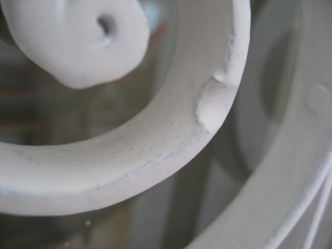 St. Andrä-Wördern, Riegergasse 5: Einschussdelle am Gitter des ehemaligen Eingangstors © Anton Tantner