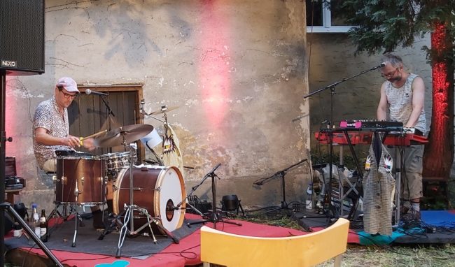 Das gilt auch für den letzten Act des Abends, Petra und der Wolf, der wegen Wolkenbruchs indoor stattfindet. Wo die Wogen der Musik dann alle so überrollen, dass nur mehr getanzt werden kann. Daran ändert auch ein Wechsel der Gitarren nichts (Saiten reißen nunmal auch an feinen Halbakustischen). Apropos, nicht nur Gitarristin Petra Schrenzer, auch Aurora Hackl Timón (Drummer of the Month April 2020, »Backbeat Magazin«) wechselt kurz von ihrem Stamminstrument zum Saxophon und zurück. Nebst Loop und Bass Pedal sind die Songs auch gesanglich allerfeinst. Eingängig und doch ergreifend. Nachhören ist Pflicht, denn der Rest des Reviews hat sich leider vollständig in Euphorie aufgelöst, für weitere Eindrücke checke man das Album »Surface«.