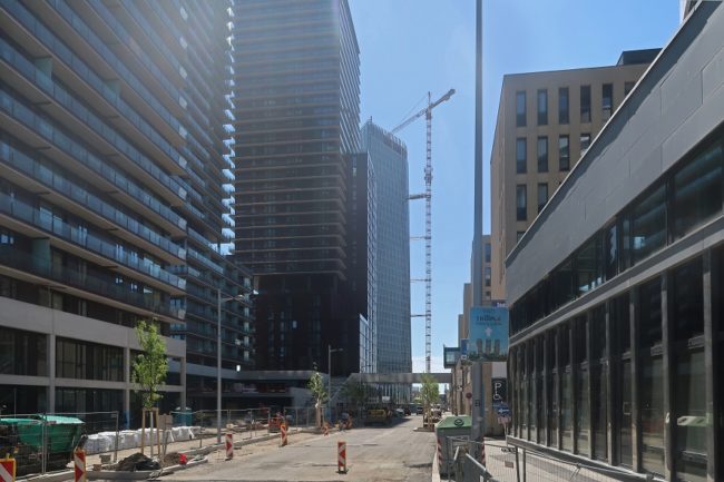 Wien baut sich seine erste Straßenschlucht. Bislang waren Hochhäuser weitgehend Solitäre (Millennium Tower) oder Ensembles (Uno-City/Wienerberg). Hier waren die Hochhäuser als ein nicht wirklich notwendiges Geprotze konzipiert, denn niemand »muss« in Wien hoch hinaus. In Erdberg wird jetzt ein erstes Gässlein zur Schlucht. Anders als in NYC wird der Sidewalk allerdings grabenstill bleiben, denn auch mit großem verbautem Volumen stellt sich – seltsamerweise – nie Stadtleben ein.