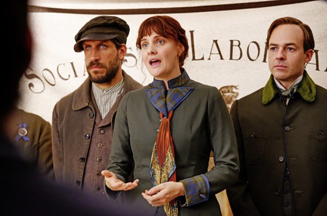 Nach »Portrait de la jeune fille en feu« im letzten Jahr beschert uns die Viennale auch heuer ein feministisches Period Piece als Eröffnungsfilm: »Miss Marx« von der italienischen Regisseurin Susanna Nicchiarelli erzählt die Geschichte von Eleanor Marx (Romola Garai), Spitzname »Tussy«, der jüngsten Tochter von Karl Marx, die nach dem Tod ihres Vaters 1883 dessen Nachlass verwaltet und auch sein politisches Erbe antritt. Als Teil der sozialistischen Elite setzt sie sich für die Rechte der Arbeiter*innen ein und kämpft insbesondere gegen die Kinderarbeit und für die Gleichberechtigung der Frau. Unterstützt wird sie dabei von dem Dramatiker Edward Aveling (Patrick Kennedy), mit dem sie bald nicht nur die politische Gesinnung, sondern auch Tisch und Bett teilt. Nicht auf dem Papier, wohlgemerkt, denn Edward ist bereits verheiratet, lebt jedoch von seiner Frau getrennt. Doch als moderne junge Frau mit gesellschaftlichem Status kann sich Eleanor gewisse Freiheiten erlauben: Sie ist Atheistin, politische Aktivistin, trinkt und raucht wie ein Schlot und gilt gemeinhin als unangepasste Rebellin.