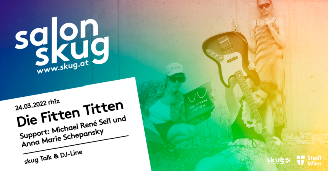 Erst alles aufmachen, dann alles abreißen! Am Donnerstag, dem 24. März 2022 holen wir im rhiz endlich den Salon nach, der dem letzten Lockdown zum Opfer gefallen ist. Einerseits mit feministischem Lo-Fi-Electro von Die Fitten Titten aka Anna Barbieri, Lisa Marie Ernst, Claudia Lomoschitz und Julie Riederer, die im August 2021 ihr Debütalbum vorgelegt haben und für ihre Live-Shows (zurecht!) berüchtigt sind. Andererseits mit Support von Michael René Sell und Anna Marie Schepansky, die »Prostata-Punk vom Feinsten« aus den Wiener Kellerlöchern in die Stadtbahnbögen bringen werden. Fürs Rahmenprogramm sorgen wie immer ein skug Talk zu einem brennenden Thema (mehr dazu in Kürze auf skug.at zu lesen) und die Scheibenjongleur*innen der skug DJ-Line. Kommt bitte geimpft/genesen und gerne zusätzlich getestet, Eintritt freie Spende und wir freuen uns auf euch!