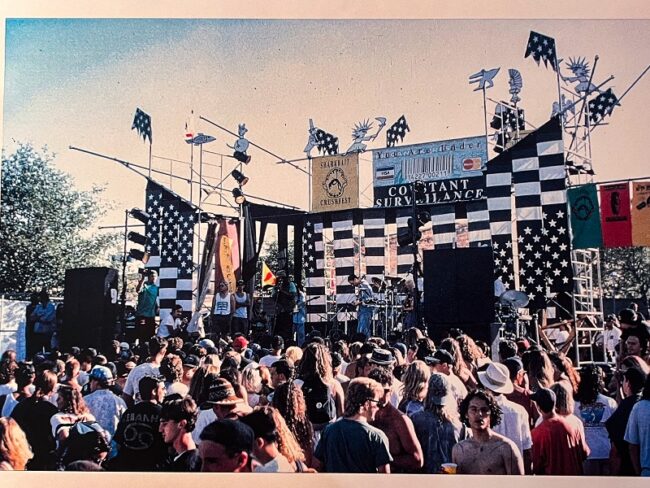 Ja, du sagst es. Menschen aus vielen Kulturen der Welt, unterschiedlichen Gesellschaftsschichten, jung und alt und jetzt auch noch im Internet! An dieser Stelle mache ich ein kurzes fast forward: Nachdem ich nach der ganzen Action noch vier Monate mit den Stones unterwegs war, war 1990. Die Mauer war weg und wir haben in Ostberlin zwei Konzerte gespielt. Aber auch in Prag. Diese Energie werde ich nie vergessen! Das war für mich persönlich ein völlig anderes Gefühl als für meine US-amerikanischen Kollegen, die diese Geschichte gar nicht erlebt haben! Bill Graham ist dann leider in seinem Hubschrauber verunglückt. Nachdem ich damals aber schon viel selbstständig gearbeitet habe und eine gute Connection nach Los Angeles hatte, bin ich beim Lollapalooza Festival gelandet: ein Festival, wo es auch große Kunstinstallationen gab. Das war dann die Zeit zwischen 1991 und 1999. Da machte ich mein eigenes Studio auf und arbeitete unabhängiger als zuvor. Es gab viel Berührung mit einer kleinen Galerie in San Francisco – da war jede Eröffnung eine große Party! Das war ähnlich den Kellertheatern in Wien. Es kamen Student*innen von der Akademie und die anwesenden Kunstkritiker*innen brachten sie zur nächsten Galerie. Es war ein einziger Rave – und man wurde wirklich hineingezogen. Und mein Mann: Er war einfach der richtige dafür!