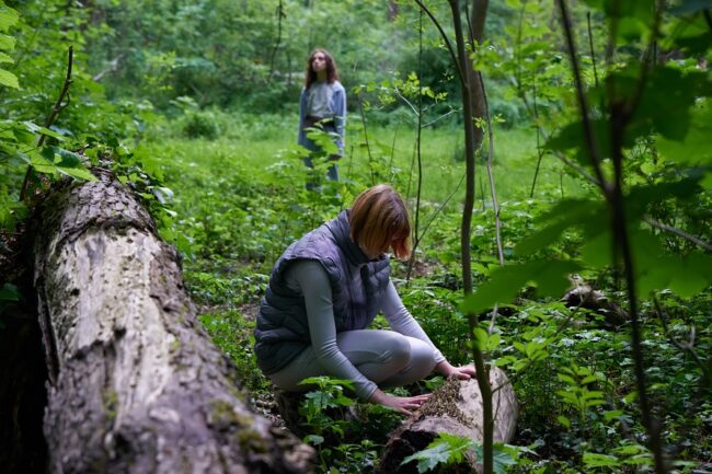 Claudia Bosse: Es ist eine audio-performative Spurensuche. Das Coronavirus war ein großer Mittäter dieser Arbeit. Meine Reisetätigkeiten wurden unterbrochen und ich war plötzlich gezwungen, mir meine nähere Umgebung genauer anzusehen und da habe ich mich sehr viel im Wald aufgehalten. Gedanken, die ich aus meiner Indonesienreise mitgebracht hatte, wurden in die Landschaften, die mir zur Verfügung standen, eingelassen. Ich habe auch an der Akademie der Bildenden Künste Wien unterrichtet und wir waren auf der Suche nach alternativen Erfahrungen zur Online- und Screen-Präsenz. Im Rahmen eines experimentellen Formats haben wir uns über WhatsApp verknüpft und konnten uns hören, aber räumlich nicht mehr als Gruppe sehen. Die performative Bedingung des intimen Hörens ermöglichte es uns, gemeinsam auf Einzelerfahrungen, auf Entdeckungen von Phänomenen in dieser Waldlandschaft hinzuweisen. Visuelle Wege dominieren oft unsere Wahrnehmung. Das Fiktionale, Spekulative einer Stimme ermöglicht dagegen neue Blickweisen, neue taktile Erfahrungen oder auch Geruchseindrücke.