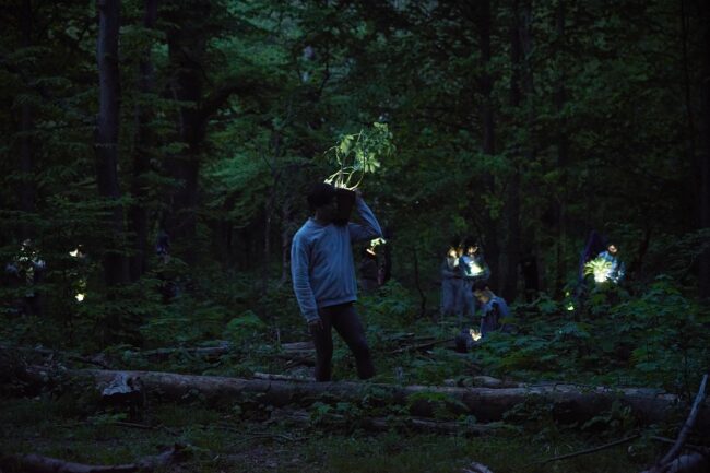 Wie lassen sich kosmisches Umgebungsdenken, Vermutungen und Ahnungen, katalytische Opferrituale und organabhängiges Orakel in die Landschaftsräume einer vergehenden Auenlandschaft transkorporal verpflanzen? Wie können wir uns wieder auf die Wahrnehmungsfähigkeiten von verschiedenen Lebensformen einlassen? Ob die Bäume revoltiert haben werden? Wie lange kann Gaia uns noch tragen? Diese und noch viel fraktalere Fragen könnten einem bei der Begehung und Begegnung mit dem neuen Stück »Oracle and Sacrifice in the Woods« (noch bis 22. Mai 2022 im Rahmen einer Koproduktion mit brut Wien) von Claudia Bosse dämmern. Denn die performative Expedition führt bestimmt in die Dunkelheit.