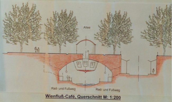 Es gab für diese Gegend schon einmal große Veränderungspläne – aber unterirdisch. Die Wiener Magistratsabteilung Wasserbau führte im Jahr 1998 einen sensationellen Wettbewerb durch: Es ging um eine Ideensuche für die unterirdische Wienfluss-Verbindung zwischen dem Naschmarkt und dem Donaukanal auf der Höhe der Urania. Der Wienfluss, der Teil von Otto Wagners Vision eines Prachtboulevards war, wird derzeit auf der überirdischen Platte durch einen riesigen Parkplatz besetzt. Samstags findet dort der berühmte Flohmarkt statt. Im Wettbewerb plante man Durchbrüche im Gewölbe, um für Belüftung und Lichteinfall zu sorgen. Der Radweg sollte durch den überwölbten Teil hinweg fortgesetzt werden und eine neue unterirdische Verkehrsachse bilden.