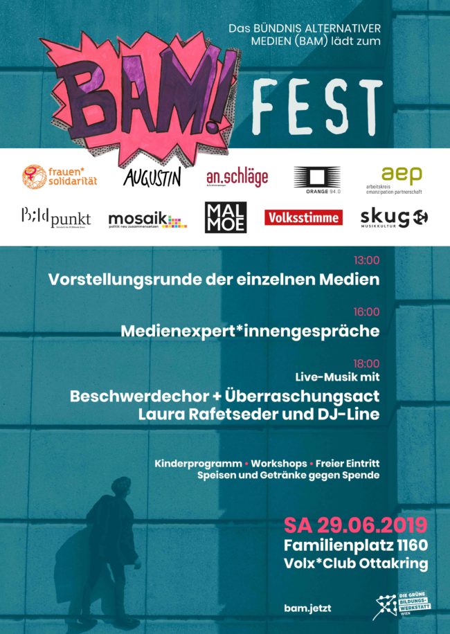Okay, die Antwort ist jetzt aufgelegt: BAM widerspricht natürlich. Die Mitglieder des Bündnisses alternativer Medien machen bei dem schleichenden Rechtsruck nicht mit, sondern stemmen sich mit ihren Möglichkeiten dagegen. Sie halten Anti-Faschismus und Anti-Rassismus nicht für ein halbherziges Sprüchlein, sie glauben nicht, dass Feminismus ein Witz ist, sie wissen, dass eine Society versulzt und verödet, wenn sie sich nicht ihrer Queerness öffnet. Und dergleichen mehr. Dafür braucht es Medien, die bereit sind, dies auch zu diskutieren. In den nächsten Tagen wird skug einige Mitglieder von BAM anhand deren eigener Texte vorstellen und wir freuen uns ganz tierisch auf das große BAM-Fest in Ottakring am 29. Juni 2019. Detailfragen zum Umgang mit dem Rechtsradikalismus erörtern wir mit dem geschätzten österreichischen Rechtsextremismusforscher Andreas Peham, dem sicherlich einiges zum medialen Gebaren der Rechten einfällt. Es werden sich alle BAM-Medien mittels Gesprächen und Workshops vorstellen. Es dürfen informell alle Fragen an die Medienmacher*innen gestellt werden, die man als Leser*in nie zu fragen wagte, und damit das Ganze ein rundes Fest wird, gibt es reichlich Speis & Trank und Musik der Extraklasse: Beschwerdechor mit Special Guest und Laura Rafetseder live. Wir freuen uns auf euch!