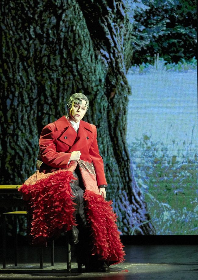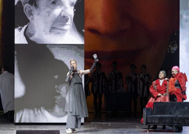 In der Szene mit Queen Elisabeth I kommt englische Renaissance-Musik auf eine ganz bestimmte Art und Weise zum Einsatz und wird mit einem Drum-Kit ergänzt. Queen Elisabeth I war die erste große Regentin, die sozusagen »ihren Mann stehen musste«, in Rüstung und mit Armbrust. Sie war ja auch der Vorstand des Heeres des englischen Empires. Sie ist eigentlich schon ein Orlando, zwischen Mann und Frau. Und diese moderne Figur der Queen Elisabeth I ist ein Symbol durch alle Zeiten hindurch: Das Heute und die Vergangenheit sind eins.