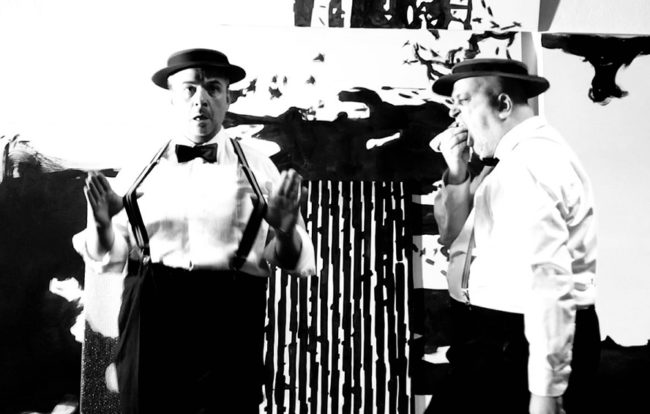 In the beginning of August or at the end of Impulstanz Festival, depending on how your summer is measured, Yosi Wanunu, the artistic director of toxic dreams and conceptional artist Roland Rauschmeier (WTKB, Wiener Tanz- und Kunstbewegung, with Anne Juren), join forces for a dynamic performance. skug met the Buster Keaton impersonating pair after a rehearsal of »The Deadpan Dynamites – The Art of the Gag« in the cellar of the Austro-Marxistic building Thuryhof, the Viennese home of toxic dreams for over twenty years. Even without their porkpie hats, creamy cakes, and spritzing flowers, the meeting was enlightening, entertaining, and delightful…