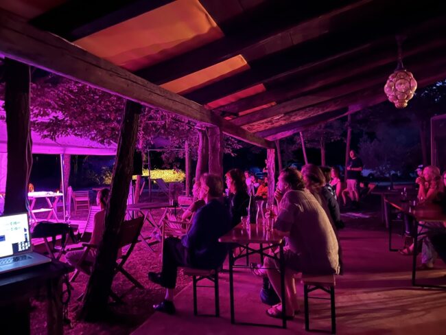 Untergreith ist eine Katastralgemeinde von Sankt Johann im Saggautal, gelegen im südoststeirischen Bezirk Leibnitz. Die Nähe zur slowenischen Grenze in dieser malerischen Weinbauregion inspirierte bereits bisher zur Zusammenarbeit mit Partnern in Friaul, Slowenien und Kroatien. Die gemeinsamen Projekte des Kuratorinnen-Trios erarbeiten Zahra Mani und Karin Schorm von ihrer Basis in einem Steinhausensemble in Hrelji 45, situiert in der Nähe der im Zentrum von Istrien gelegenen kroatischen Kleinstadt Žminj. Dieser Ausgangs- und Kreuzungspunkt ist prädestiniert für eine rhizomatische Verästelung von Kulturinstitutionen im Alpe-Adria-Kulturraum. Das Vernetzungsprojekt »(S)low Light – Seeking Darkness« mit dem Leitthema Lichtverschmutzung gastierte 2021 bei Stazione di Topolò in Friaul, beim Sajeta Festival im slowenischen Tolmin und im Rahmen des Firefly Festivals und von Hrelji 45 in Istrien und hatte einen seiner Höhepunkte in einer Koproduktion mit Innenhofkultur in Klagenfurt. Die Vertiefung der Zusammenarbeit mit den Partnern aus der Alpe-Adria-Region wirft Fragen auf, die von Karin Schorm, Zahra Mani und Mia Zabelka im Kollektiv via E-Mail-Interview beantwortet werden.