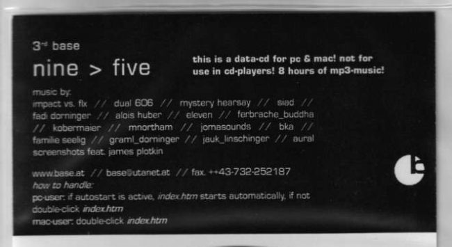 Acht Stunden Musik auf einer CD: Wenn sich da den Majors mal nicht die Nackenhaare aufstellen. Oder wäre das was, dem Konsumenten eine CD um den achtfachen Preis andrehen zu wollen? Könnte schwierig werden. Für all das und einiges mehr gibt es »Nine>Five«.