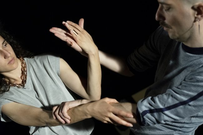 Ich habe mir bewusst eine Duokonstellation für diese Arbeit ausgesucht. Mit meinem Co-Performer Costas Kekis kann ich so mining als zwischenmenschliche Beziehung darstellen. Mining zwischen Körpern fordert mich dazu auf, mir zu überlegen, wie ich in dieser Welt existieren möchte, und zeigt mir auch, wo und wann wir als Kultur daran scheitern, »gut« zu sein: in den Räumen zwischen Vertrauen und Abhängigkeiten. Es bringt uns dazu, über die Bedeutung unserer Worte, Sprache und Handlungen nachzudenken, und darüber, welche Folgen diese für Andere(s) haben. Oder uns die Frage zu stellen, was wir mit der Information, die wir über Andere haben, machen. Die emotionalen Ressourcen, die wir aus unseren Beziehungen minen, bringen ethische und moralische Verantwortungen mit sich. Indem wir dies verhandeln, entsteht eine gemeinsame Geschichtsschreibung. Letztere ist, finde ich, eine große zwischenmenschliche Ressource. Sie gibt unserem Sein Bedeutung und fordert uns auf, sie gemeinsam fortzuschreiben.