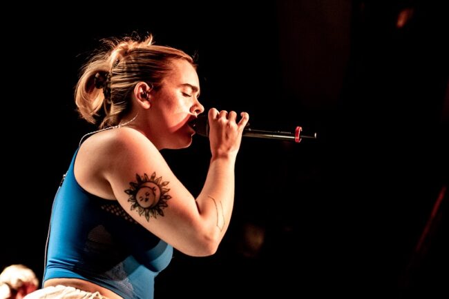 Während »Malibu« Urlaubsfeeling versprüht (»Höre das Rauschen der Brandung / Laufe die Küste entlang / und verlier die Spannung«), wird es danach etwas ruhiger. In »Egal« singt KeKe über die Scheißsituation, sich trotz Beziehung in eine andere Person zu vergucken. In »Wolfau« – der Name ihres Heimatsdorfes – verarbeitet sie negative Erfahrungen aus ihrer Kindheit. In ihren letzten zwei Songs »DMs« und »Thick« zeigt sich KeKe dann wieder stark, teilt aus, ist selbstbewusst: »Dream, goddess, fat, queen / Finger licking good like whipped cream / Fit, thick, skintight jeans / Entern deinen Katalog like ›Bitch, please«. Flexen, das kann KeKe. Die Crowd liebt es.