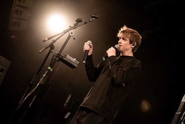 Der Festsaal der SiMM City ist voll an diesem Abend. Dabei ist Schmyt schon das zweite Mal in kurzer Zeit in Wien. Erst im Mai 2022 spielte er im Rahmen seiner ersten Tour unter dem Titel »Niemand kommt« noch vergleichsweise heimelig im Flex Cáfe. Ironischerweise verkauften sich die Tickets damals wie warme Semmeln, der Gig in Wien sowie auch alle anderen Termine der Tour: restlos ausverkauft. Eine Herbst-Tour wurde angehängt, die geplante Show im WUK verlegten die Veranstalter*innen wegen der hohen Vorverkaufszahlen indie SiMM City. Kurz nach der Veröffentlichung von Schmyts erstem Album»Universum regelt« Mitte Mai waren auch hier alle Tickets weg.