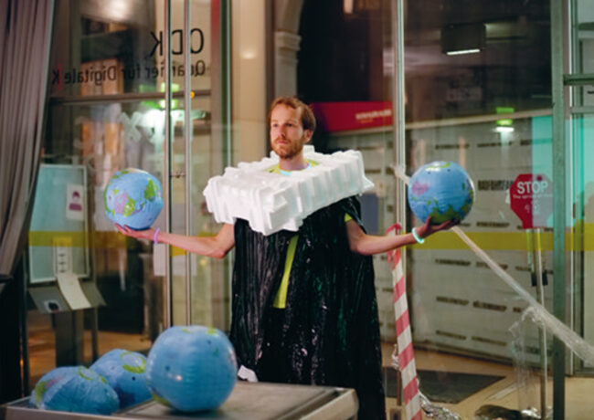 Die Ohnmacht der Aufklärung ruft: »Versteh die Katastrophe!« Aber das haben wir ja längst. Jedes Kind und jede*r Greis*in weiß, dass Plastik schlecht ist, dass es uns killt, und dennoch schenken wir ihm alles her. Die letzten Ressourcen gehen in einen kleinen, aufblasbaren Wasserball. Auf seine dünnen Wände ist ein quietschbuntes Abbild der Weltkarte gedruckt. Der Hohepriester Kilian Jörg hebt es in die Höhe. Langsam geht dem kleinen Erdball die Luft aus, denn er ist nicht ganz dicht. Nun wird es die Religion der »Toxic Temple MESS« richten müssen. Anna Lerchbaumer und Kilian Jörg gedenken, sie zu stiften, um die letzten Dinge zu zelebrieren. Wir Menschen haben uns verausgabt für einen Berg Plastikmüll. Dies Unbegreifliche begreifbar zu machen, versucht der »Toxic Temple«. Ein inspirierendes Buch. Die beiden Autor*innen sind zu Gast im skug Talk im Salon skug am 19. April 2023.