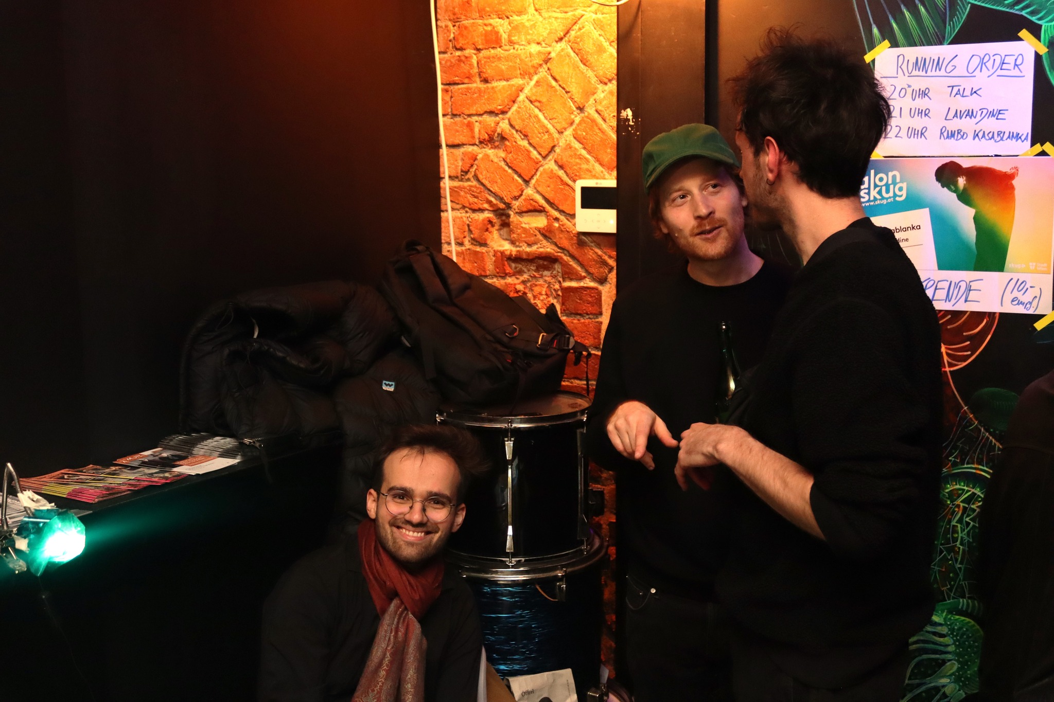 Lavandine, Lavandine, was macht ihr mit uns? Mit offenem Mund starren wir gemeinsam auf die Klanginstrumente, bis der Blick auf die eignen Schuhbandel sinkt und dort festgeknotet bleibt, um nach 50 Minuten ein Set abzufeiern, das so rund und ausgewogen war, dass das enthusiasmierte Publikum ausrufen möchte: »Woah, macht ihr das öfter?« Nö, war Premiere im Salon und überhaupt, wird es jetzt aber sicher öfter live geben. Hier die digitale Aufnahme zum Mitwippen: