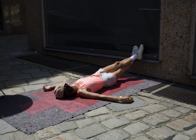 Am 18. August 2021 wurde die Künstlerin Beate Ronacher während ihrer performativen Liegearbeit »Fußfälle« im Innenhof der Salzburger Galerie 5020 von einem Autofahrer überfahren. Der 71-jährige Lenker gab an, sie für eine Schaufensterpuppe gehalten zu haben und fuhr – ohne sich durch Aussteigen o. Ä. weiter zu vergewissern – einfach über sie drüber. Dieser Vorfall wurde zwar in den Chroniken beinahe jeder österreichischen Zeitung erwähnt. Eine genauere künstlerische und theoretische Auseinandersetzung mit ihrem Werk, seinen Intentionen und den sich daraus ergebenden Potenzialen und Fragen zu subversiver und politischer Kunst im öffentlichen Raum fehlt allerdings bislang noch gänzlich. skug hat Beate Ronacher, die für »Fußfälle« im Juni mit dem Gabriele-Heidecker-Preis ausgezeichnet wurde, zum E-Mail-Interview gebeten.