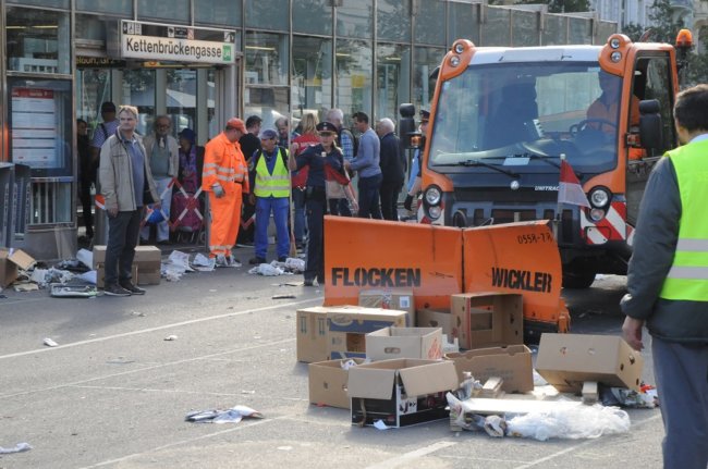 Der neue Direktor der MA59, also des Marktamtes, ist Andreas Kutheil. Er war früher Betriebsleiter bei der MA48 Abfallwirtschaft, ist also ein Vollprofi zum Thema »Müllprobleme«. Seine simple Lösung ist eine verkürzte Öffnungszeit des Marktes, aber das »Phänomen Flohmarkt« braucht durchdachtere Konzepte als das zu frühe und harsche »Abdrehen« – 40 Jahre hat es schließlich für die meisten Menschen gut funktioniert! Ein frühzeitiges Ende des Flohmarkttages um 14:00 Uhr führt nun zu einer massiven Verdichtung und stresserfüllten Hektik sowie zu herben Verlusten für alle. Für alle Flohmarktmenschen und auch für die zahlreichen Tourist*innen Wiens, die sich diese Attraktion nicht entgehen lassen wollen. Durch den Druck der verkürzten Marktzeit kommt es zu einem »Einpackchaos«, bei dem die Ladeautos durch die noch zahlreichen Besucher*innen hindurchfahren müssen. Da die meisten Standler*innen mehr als eine Stunde zum Einpacken ihrer Stände benötigen, herrscht bereits ab 13:00 Uhr, also zur besten Zeit, zum Teil aggressive »Abbaustimmung«, weil der Umsatz sinkt und der Druck steigt. Der gemütliche »Nachmittagsbummel« über den Flohmarkt, eingebettet zwischen weltberühmter Architektur, ist in der seit vierzig Jahren gewohnten Form so nicht mehr möglich.