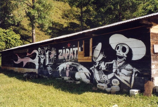 In der Tat hatte die Bewegung, die sich um die 1983 gegründete Guerilla EZLN (Ejército Zapatista de Liberación Nacional, Zapatistisches Heer zur nationalen Befreiung) mit einem antikolonialistischen Statement ihren ersten öffentlichen Auftritt begleitet. Das erste der von unzähligen, in ungewohnt lyrischer Diktion gehaltenen Kommuniqués der Guerilla-Bewegung lautet gleich zu Beginn: »Wir sind das Ergebnis von 500 Jahren Kampf.« Die Kämpfe der Vergangenheit waren von Beginn an präsent und sind ständiger Bezugspunkt bis heute. Benannt hatte sich die Bewegung nach Emiliano Zapata (1879–1919), einem der radikalen und schließlich verratenen Protagonist*innen der Mexikanischen Revolution (1910–1920).