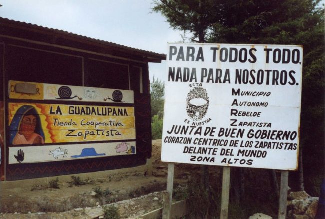 Als die Zapatistas in der Silvesternacht 1993 sieben Kreisstädte im südlichen Mexiko eroberten, war das eine große Überraschung. Weder die mexikanischen Geheimdienste und das Pentagon, noch die Linke hatten diesen Aufstand kommen sehen. Seitdem ist viel geschrieben worden, sogar extrem viel, angesichts der Tatsache, dass es sich vor allem um eine von Indigenen getragene Erhebung handelte (und seitdem handelt). Die erstaunte Mainstreampresse berichtete weltweit, aber auch in intellektuellen Kreisen fand der zapatistische Aufstand großen Anklang: Die Philosophin Silvia Federici sah in ihm den Beginn der Debatte um die Commons, weil die Zapatistas sich gegen die Verfassungsänderung wandten, nach der das Gemeindeland privatisiert werden sollte; der Politikwissenschaftler John Holloway sah ein neues Paradigma für die Linke entstehen, nach der die Welt zu verändern sei, ohne die Macht zu erobern; für den dekolonialistischen Theoretiker Walter D. Mignolo verkörperten die Zapatistas eine »theoretische Revolution«, weil sie den revolutionären Marxismus mit den indigenen Weltsichten verknüpfte; der uruguayische Journalist Raúl Zibechi sagte den Zapatistas eine »dekolonialistische Revolution« nach, um nur ein paar Beispiele zu nennen.