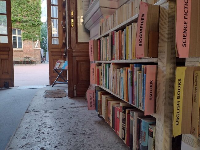 Bis Februar 2023 findet man uns im WUK am Haupteingang, von Montag bis Donnerstag, 15:00 bis 18:00 Uhr. Die Bibliothek ist auch oft früher und länger und an anderen Tagen geöffnet, aber versprechen können wir derzeit nur diese Kernöffnungszeiten. Von März bis November 2023 wird der Währinger Trakt im WUK saniert und wir wissen noch nicht, wo wir die Bücher in diesem Zeitraum unterbringen können. Über Rat oder gar Hilfe wären wir entsprechend aus dem Häuschen. Bezahlen können wir nicht mehr, als hereinkommt. Unsere ohnehin bescheidenen Rücklagen hat die Pandemie verdampft. Leicht wird es also nicht.